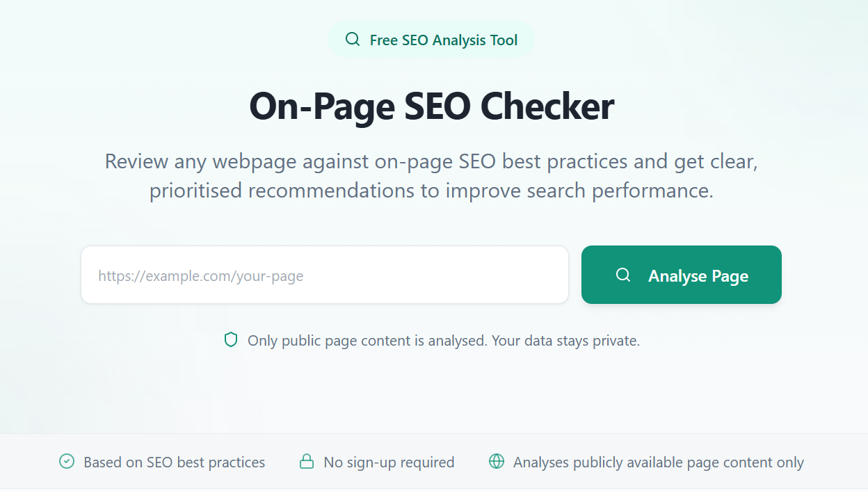 Instead, I took my own advice and started small. I chose to build an On-Page SEO Checker — a simple tool where you enter a URL , and it checks basic SEO elements like title tags, meta descriptions, heading structure, and keyword usage. Nothing groundbreaking, but something genuinely useful for the small business owners I write for.
